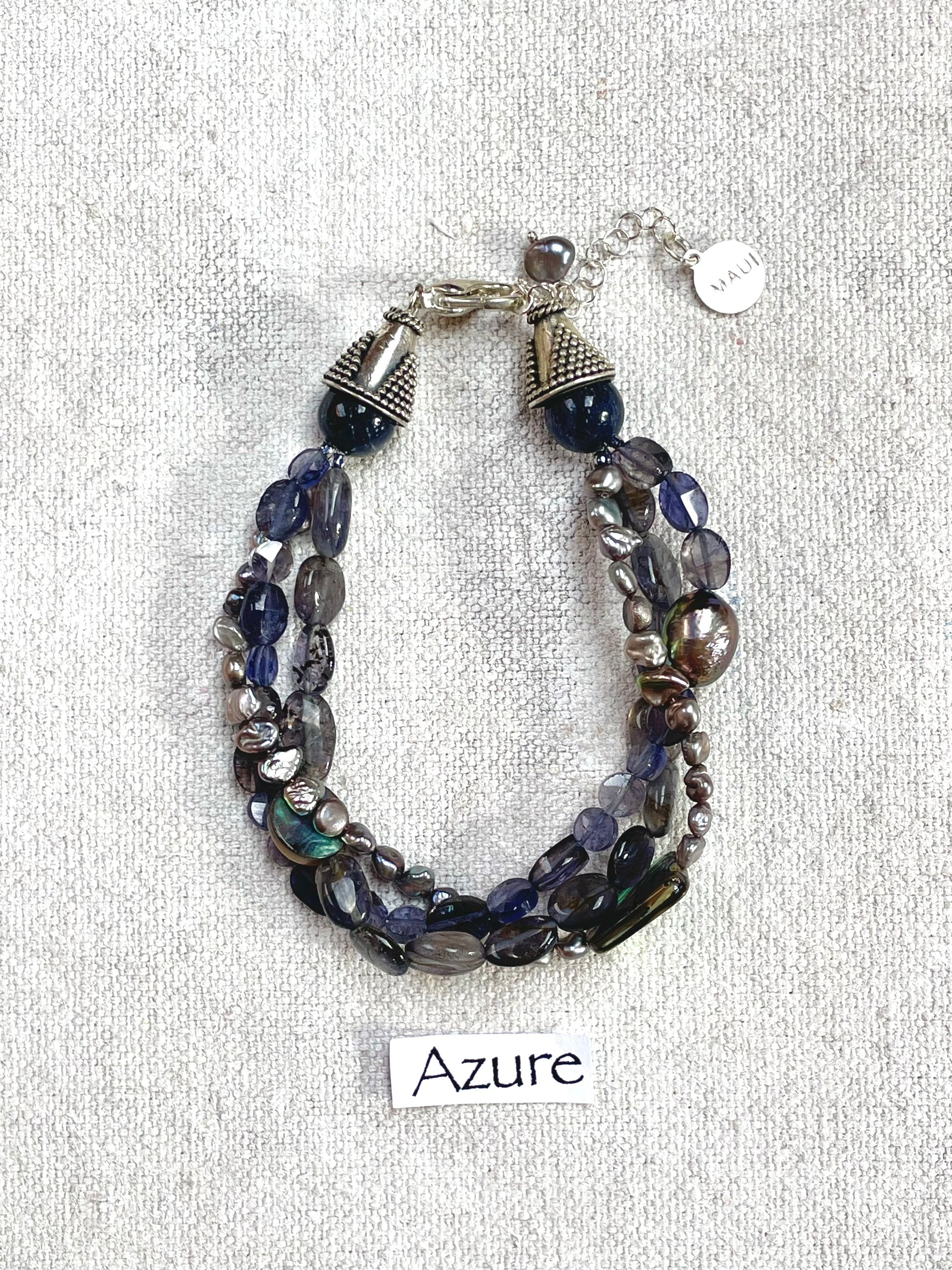 Azure | Handmade Multistrand Black Pearl and Deep Blue Bead Maui Bracelet
