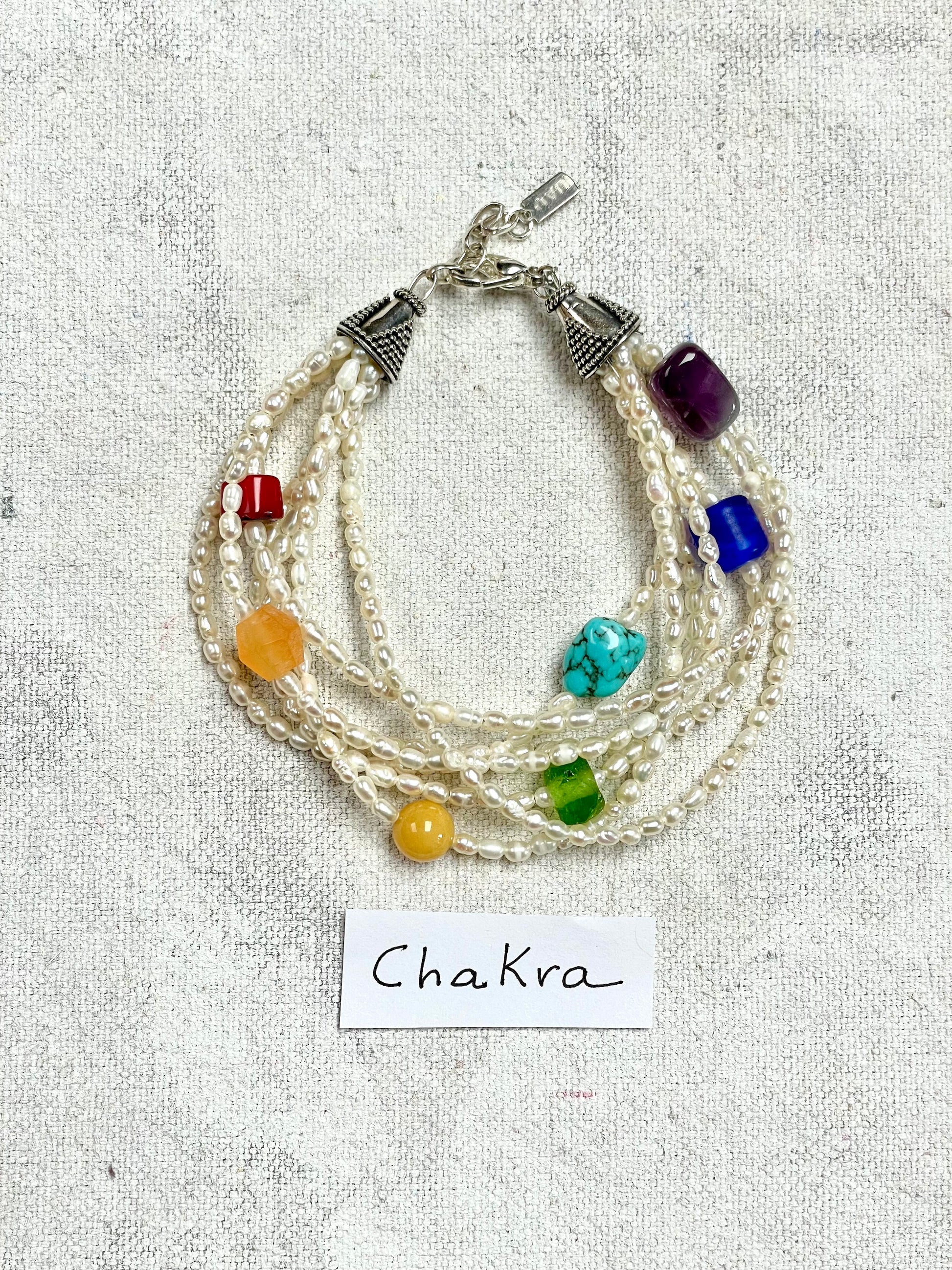 Chakra | Handmade 7-Color Bead, Pearl & Silver Chakra Bracelet