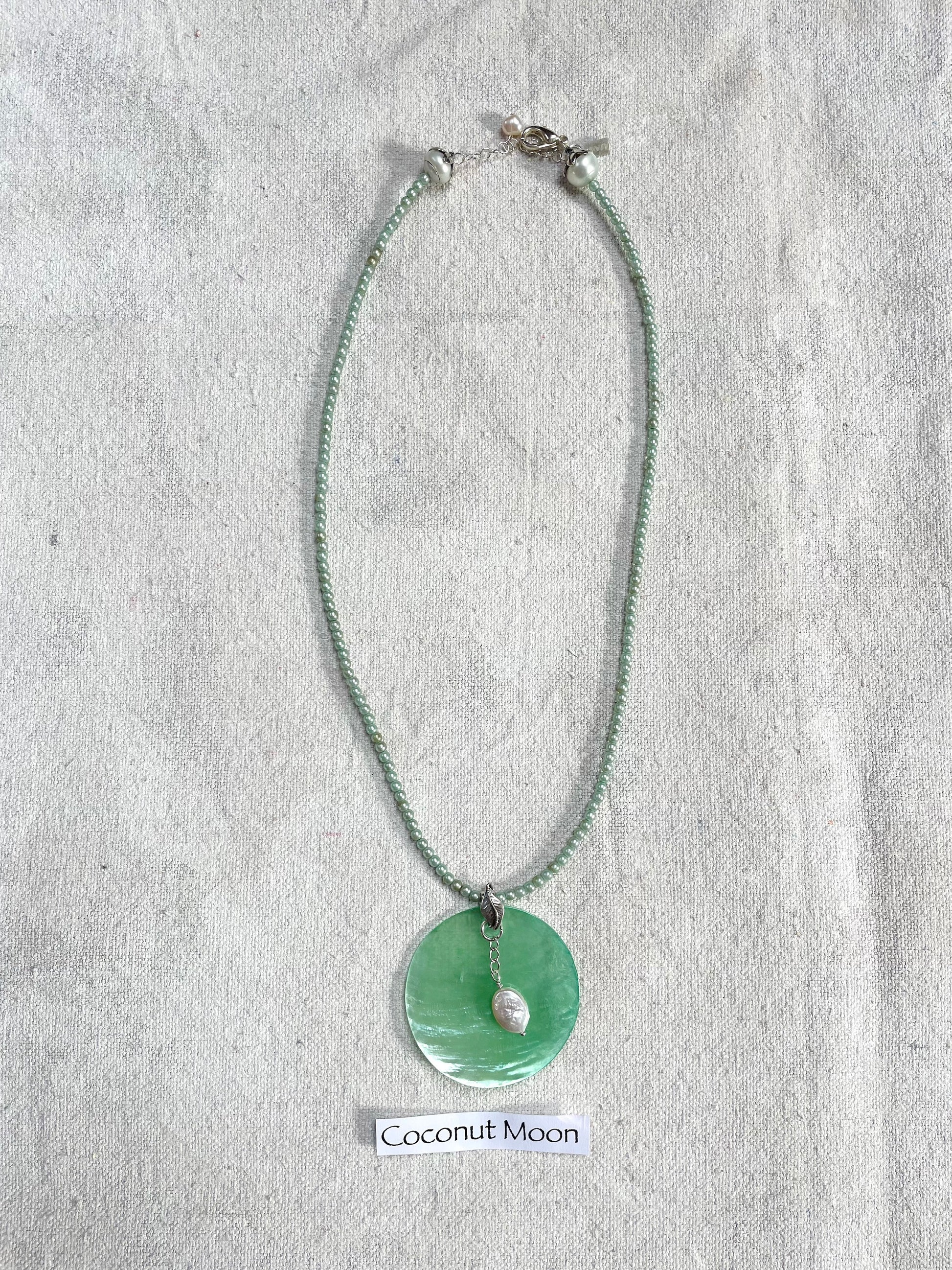 Coconut Moon | Seafoam Pearl and Shell Necklace Handmade on Maui