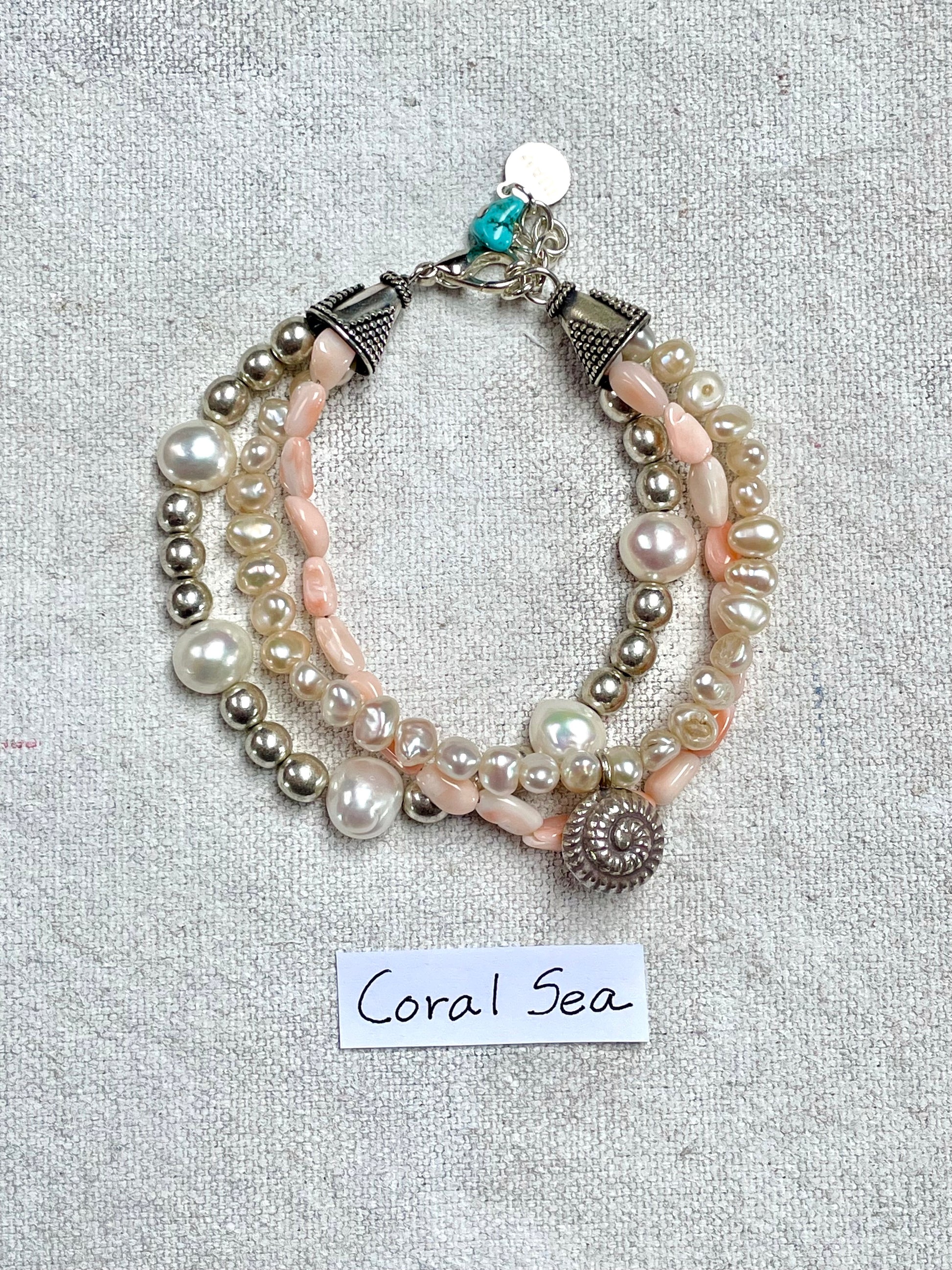Coral Sea | Handmade Coral Bead, Pearl and Vintage-Inspired Silver Bracelet