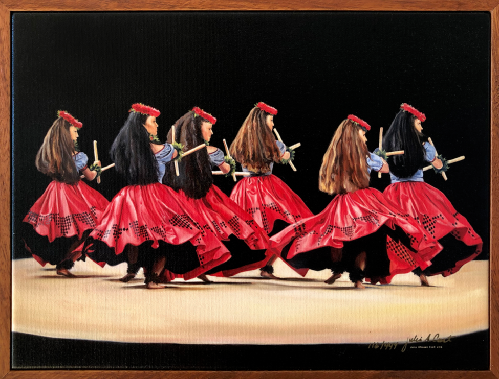 Hālau Nā Lei Kaumaka O Uka (in Red), Limited edition, 1 Piece koa frame, Julia Allisson Cost