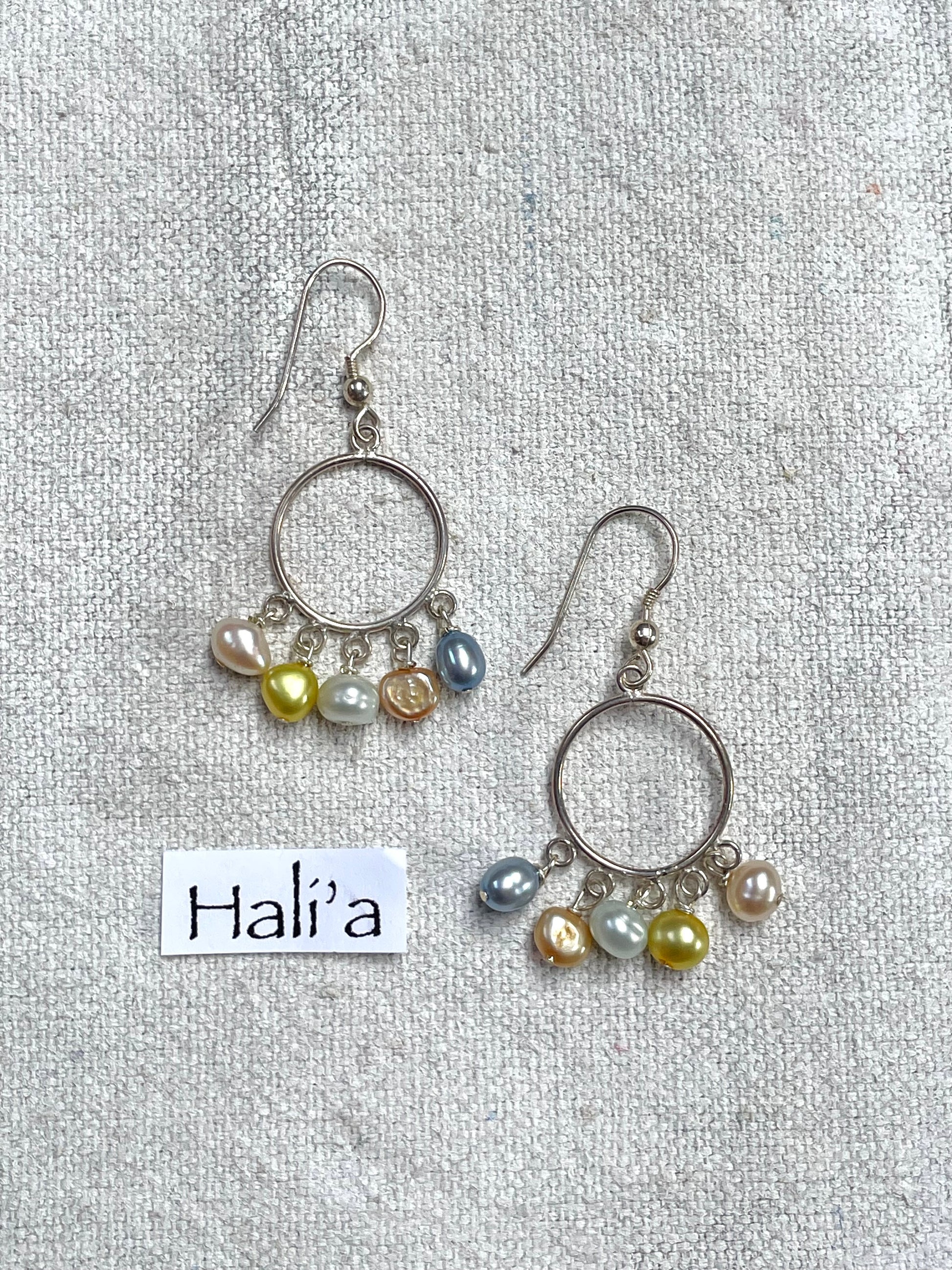 Haliʻa | Colored Pearl and Silver Handmade Bali Hoop Earrings