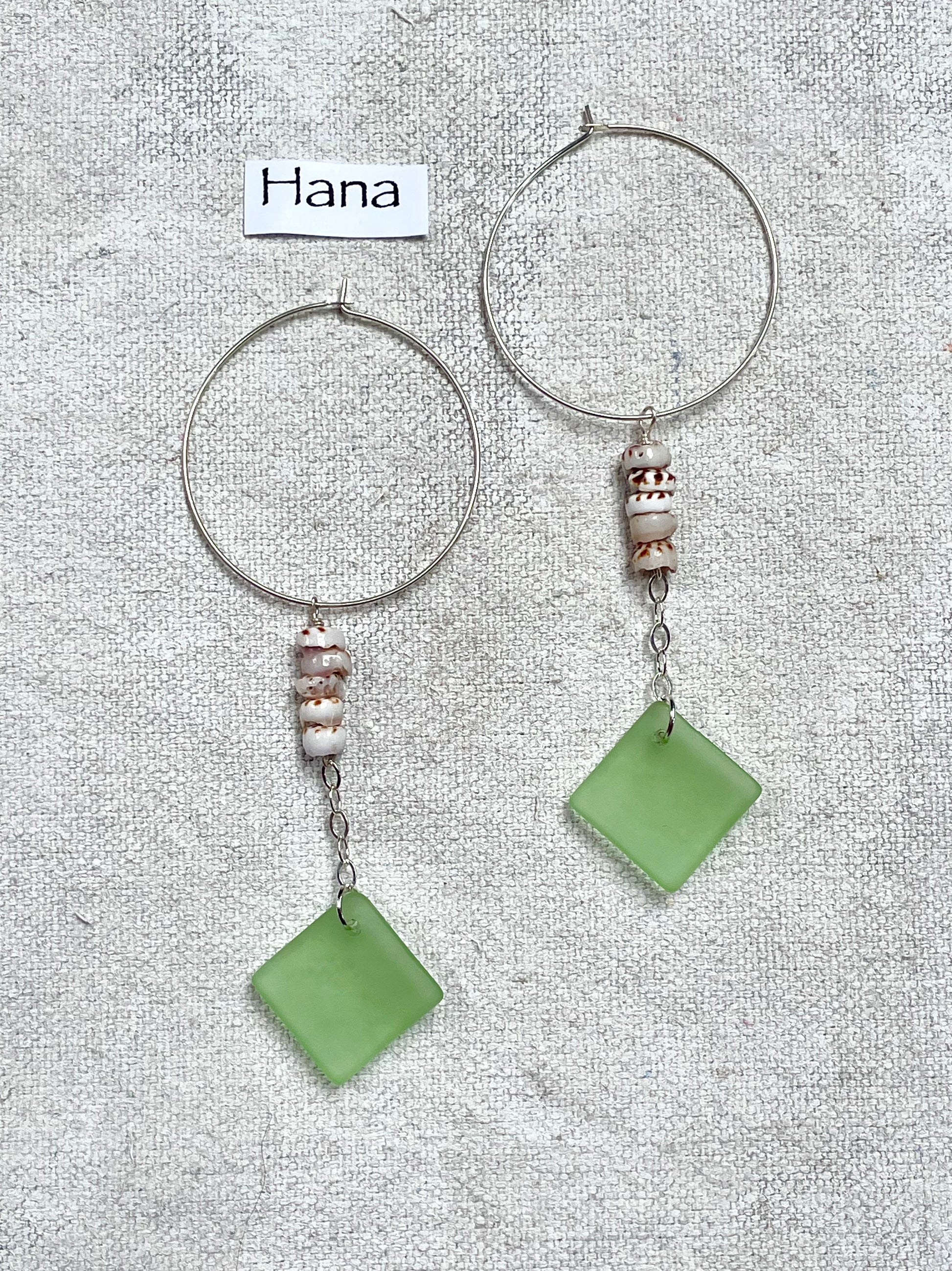 The Hana Earrings bring a touch of Hawaiʻi to your everyday look. Handcrafted on Maui by Beth Ciaburri, these one-of-a-kind earrings combine sage green sea glass, small found puka shells and silver hoops to create a delicate yet bold design. Lightweight and versatile, they’re perfect for any occasion. Prices include US shipping.