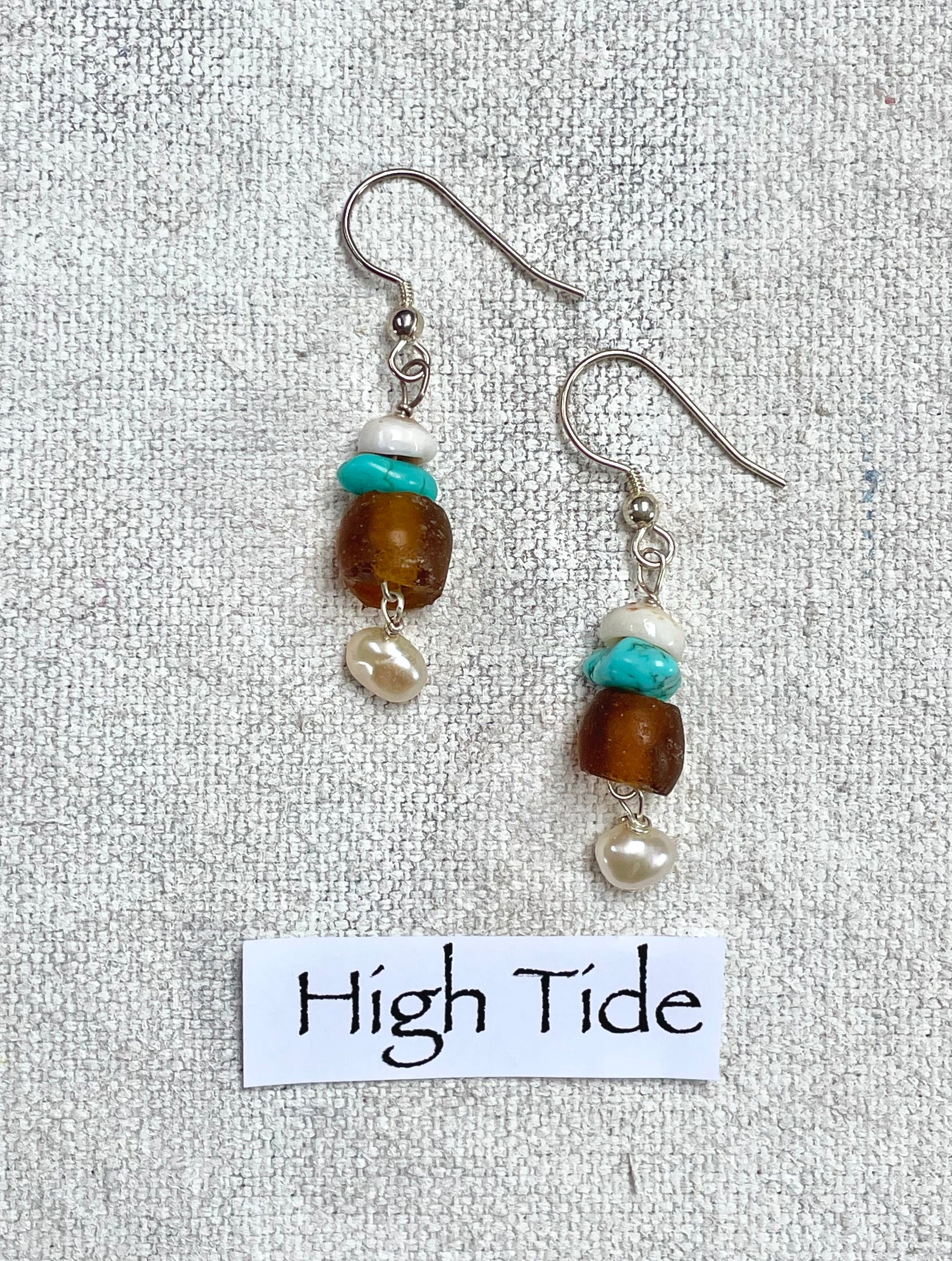 The High Tide Earrings celebrate the artistry of Maui with a thoughtful blend of brown sea glass, turquoise, found shells and faux pearl on silver, mirroring the beauty of the tide rising on Hawaiian sand. Designed by Beth Ciaburri, these one-of-a-kind earrings are lightweight, comfortable, and a timeless accessory for day or evening wear. Prices include US shipping.