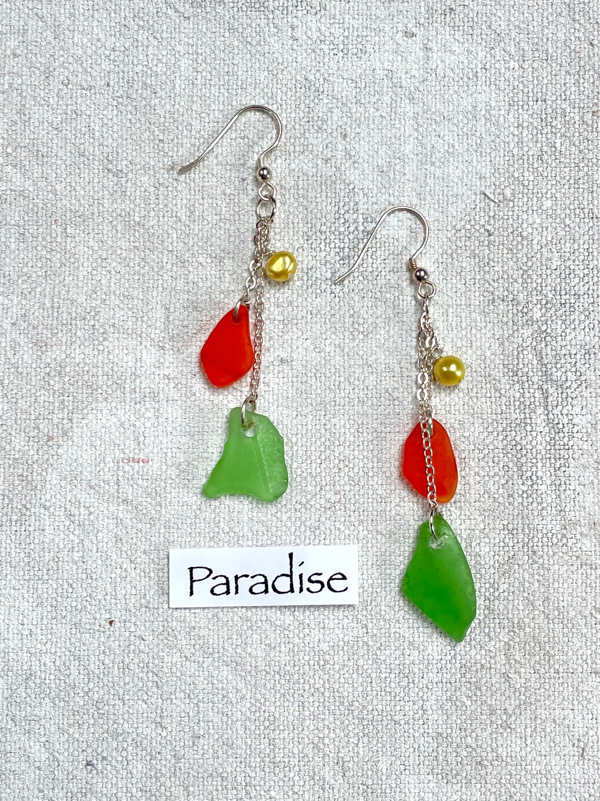 Add a pop of island-inspired color to your wardrobe with the Paradise Earrings. Crafted on Maui by Beth Ciaburri, these earrings feature found sea glass and faux pearls silver drop earrings, capturing the beauty of Hawaiian natural elements. Each pair is unique, just like the wearer. Prices include US shipping.