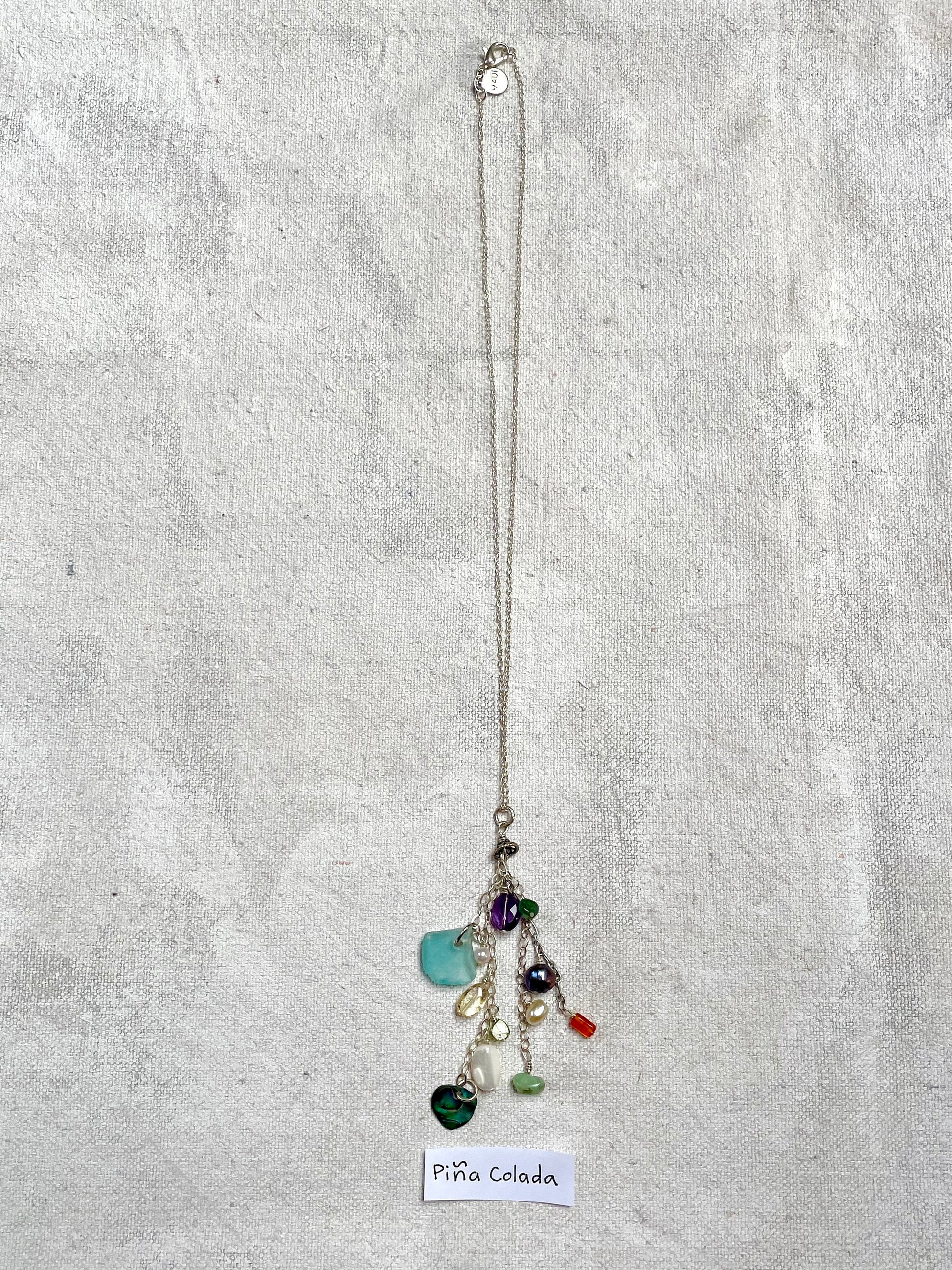Piña Colada | Handmade on Maui Pearl & Sea Glass Silver Charm Lariat Necklace