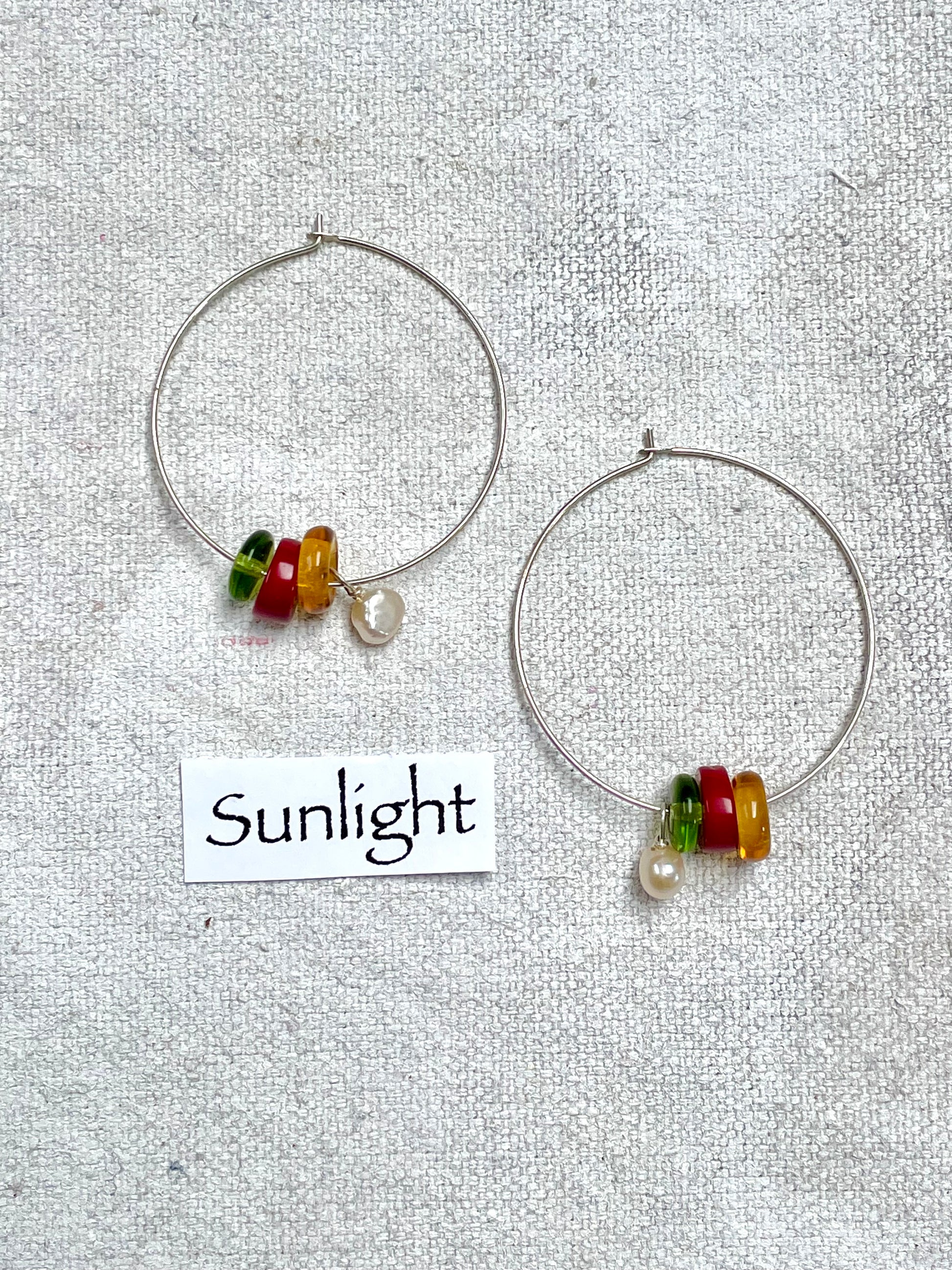 The Sunlight hoop Earrings celebrate the artistry of Maui with a thoughtful blend of colored bead and faux pearl on silver hoops, mirroring the beauty of the Hawaiian sunlight. Designed by Beth Ciaburri, these one-of-a-kind earrings are lightweight, comfortable, and a timeless accessory for day or evening wear. Prices include US shipping.